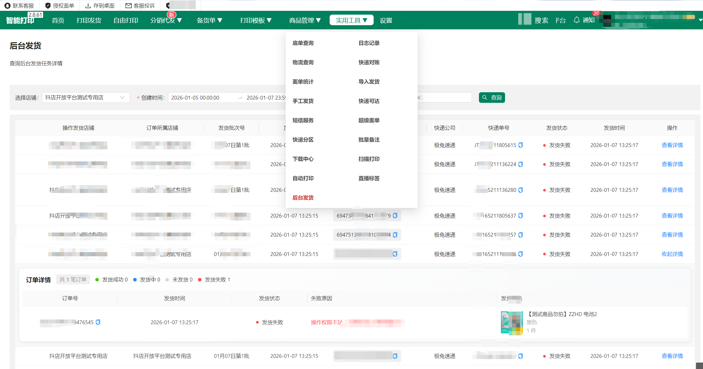 在这里,您可以找到所有的后台发货任务记录及其状态。