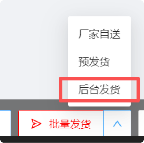 在日常操作中,您也可以通过点击**【批量发货】菜单下的【后台发货】**按钮,主动选择后台发货。